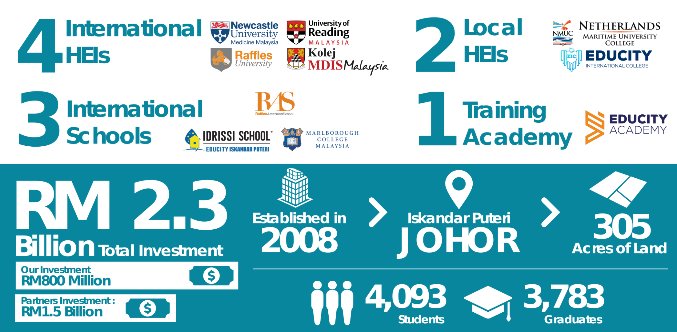EduCity Iskandar Malaysia is a fully integrated education city recognized as an EntryPoint Project (EPP) under the National Key Economic Area (NKEA), which will play an integral part in the success of Malaysia’s Economic Transformation Programme. A prime destination for world-class education, EduCity Iskandar is easily accessible via the Coastal Highway that links Medini to Johor Bahru city centre.